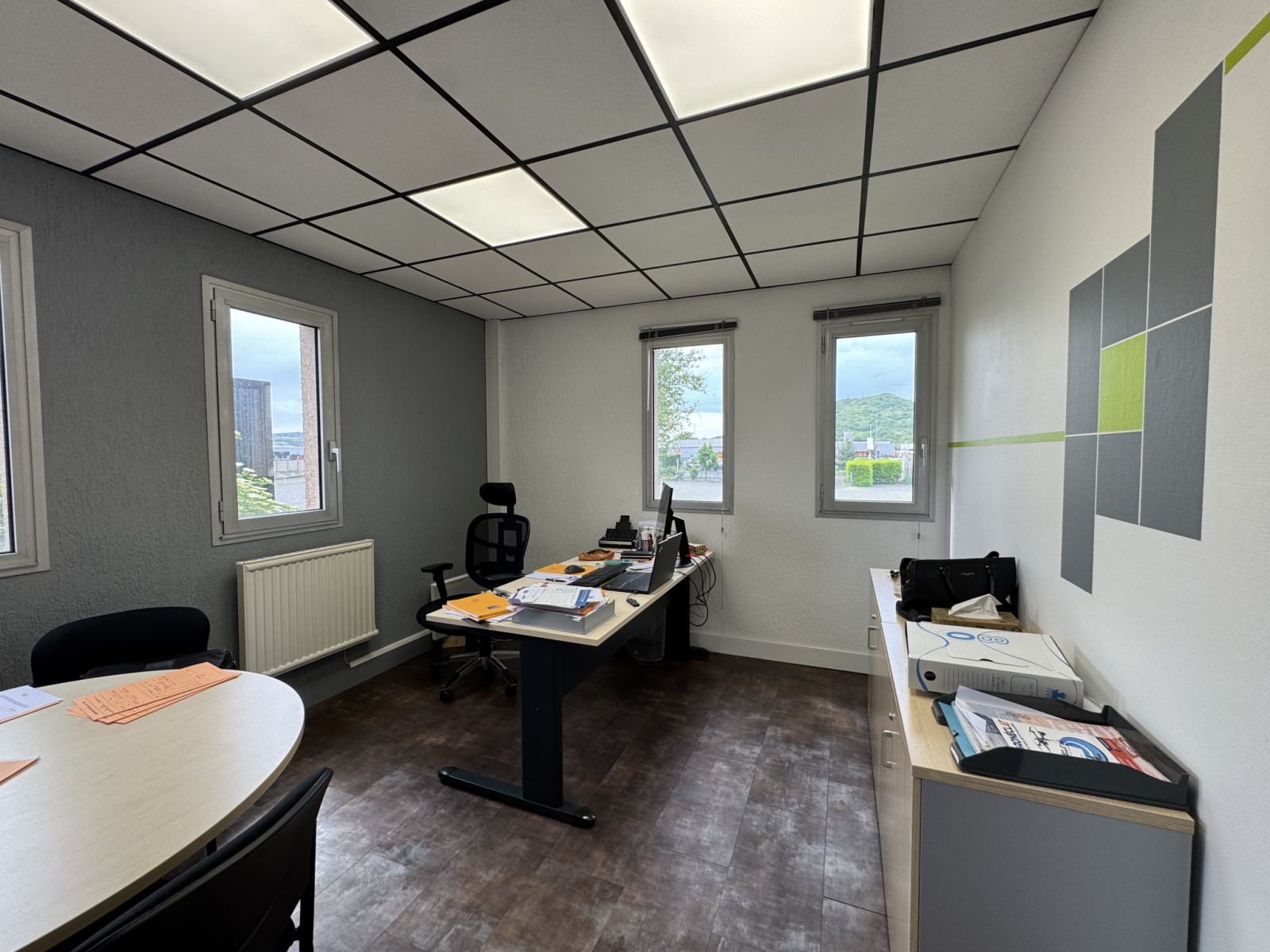 A louer au 1er étage un plateau de bureau de 102m2 totalement aménagé dans un immeuble de bureaux sur 2 niveaux en plein centre d'une zone industrielle et d'entreprises à Clermont Ferrand. En excellent état (quasi neuf) . DPE vierge réalisé en 2019. Le loyer est de 1142€HT/mois et les charges mensuelles sont de 75€HT/mois. Chauffage par climatisation réversible.