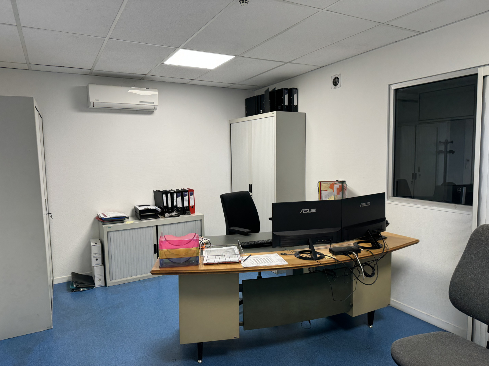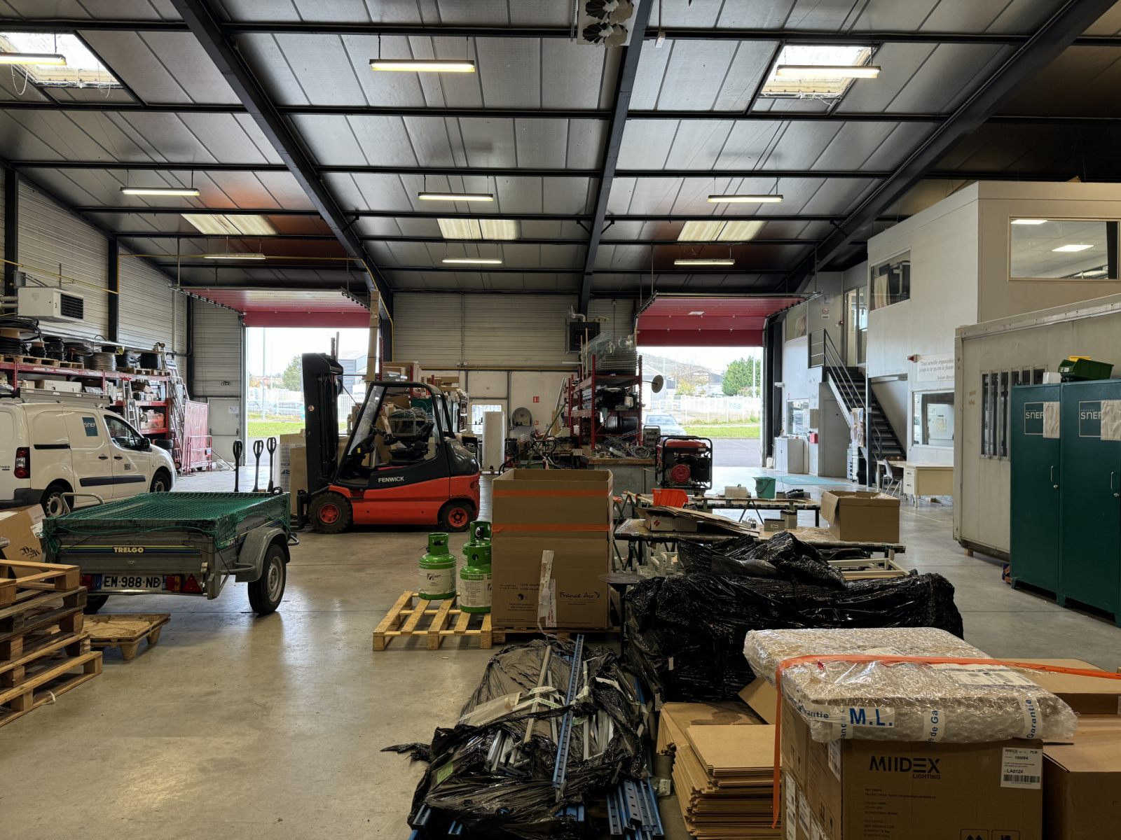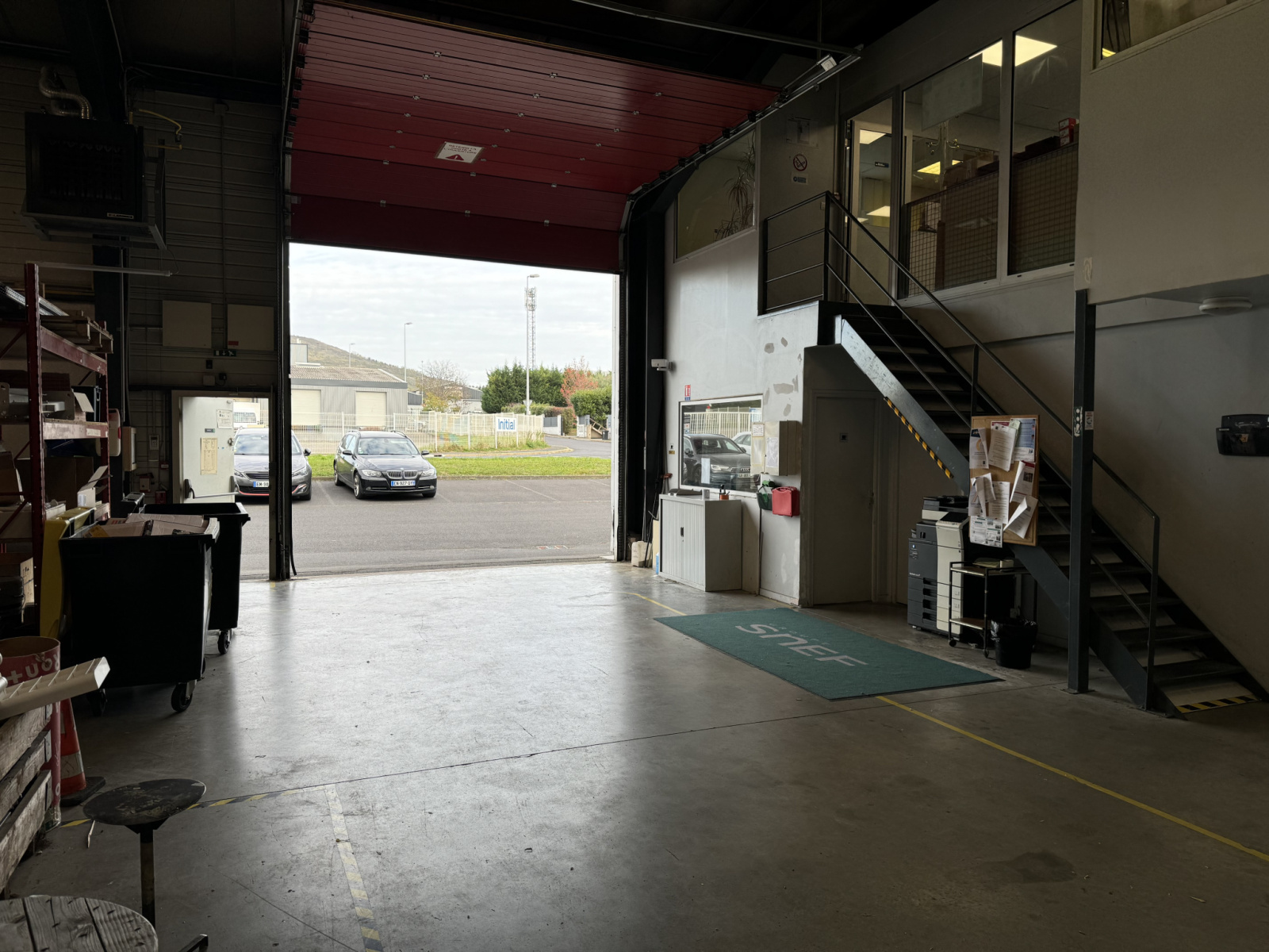 A louer sur Cournon d'auvergne, au coeur de la zone d'activité un local d'entrepôt et de bureau sur une surface totale de 768m2, comprenant un vaste entrepôt (654m2) desservi par deux portes sectionnelles de grande dimensions (largeur 4mX hauteur 4,5m), des bureaux climatisés sur deux niveaux comprenant salle de réunion, 5 bureaux individuels, salle de repos avec cuisine, vestiaires H/F, blocs sanitaires H/F(114m2). Parking extérieur 5 places et accès PL et véhicules articulés. Ce local est parfaitememnt adapté à toute activité professionnelle avec stockage, bureaux et espace de livraisons et d'expéditions.