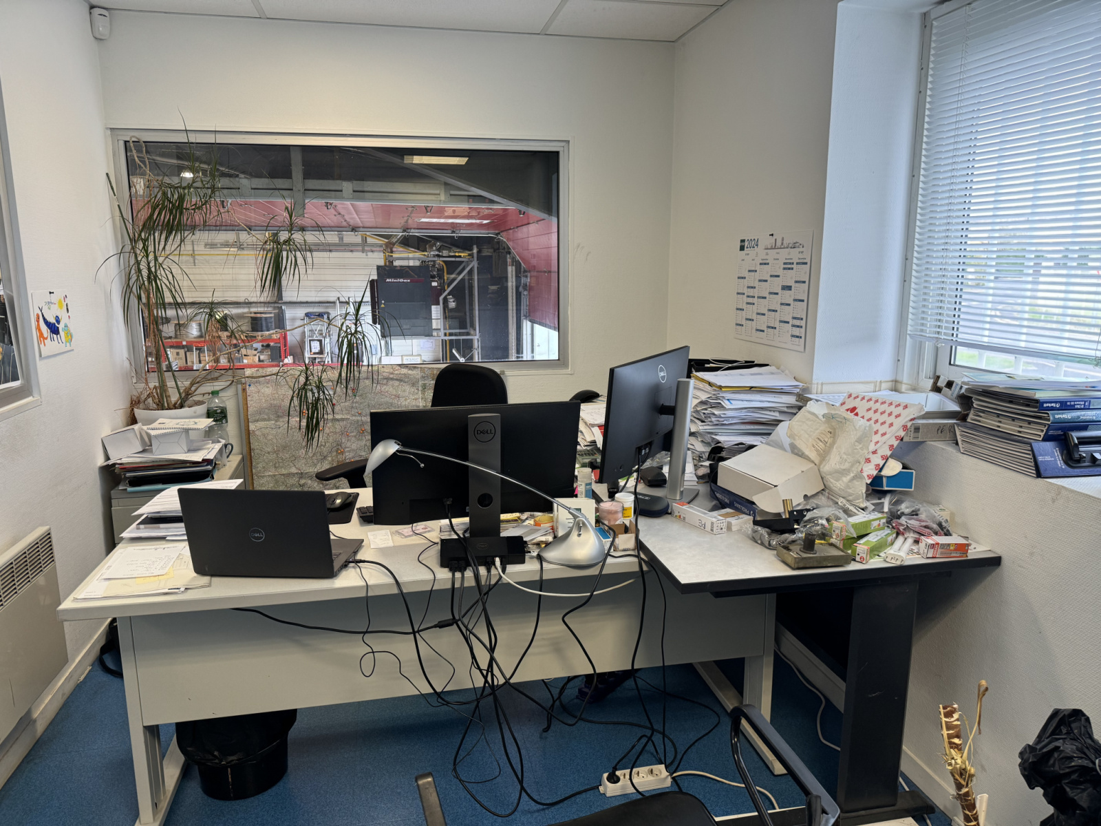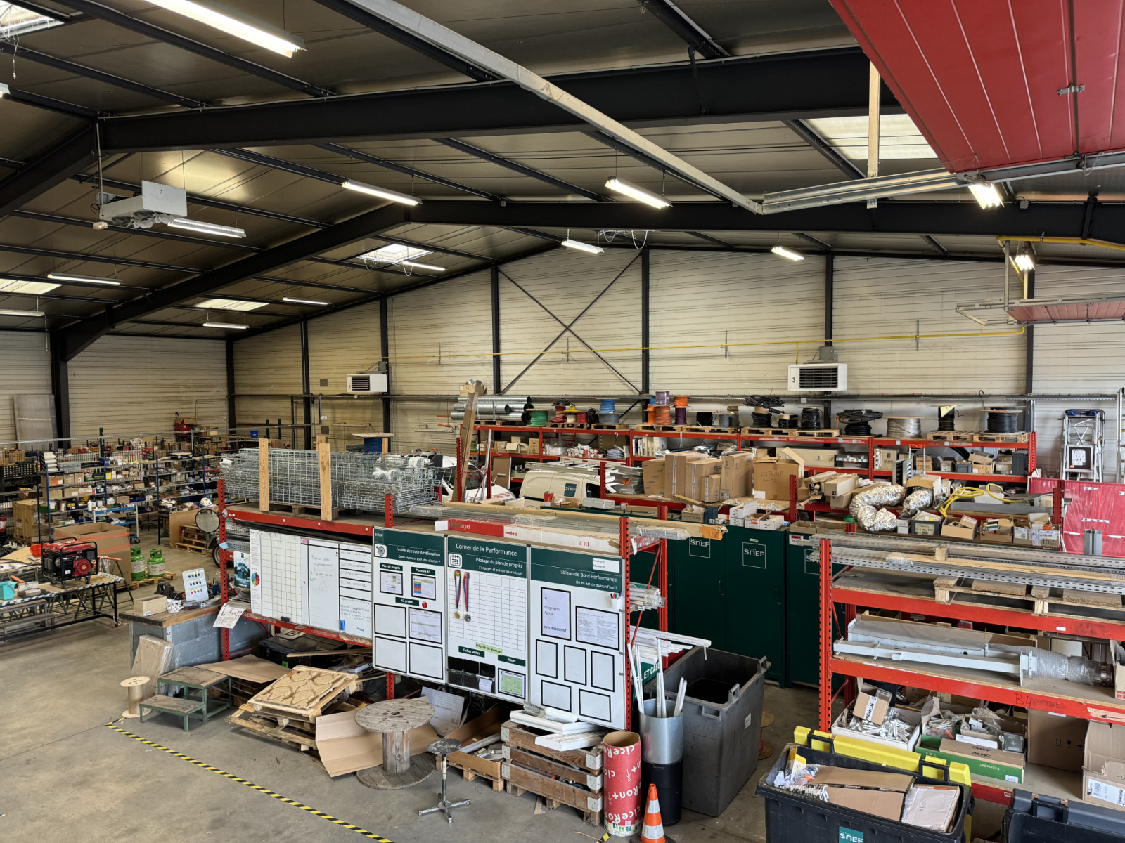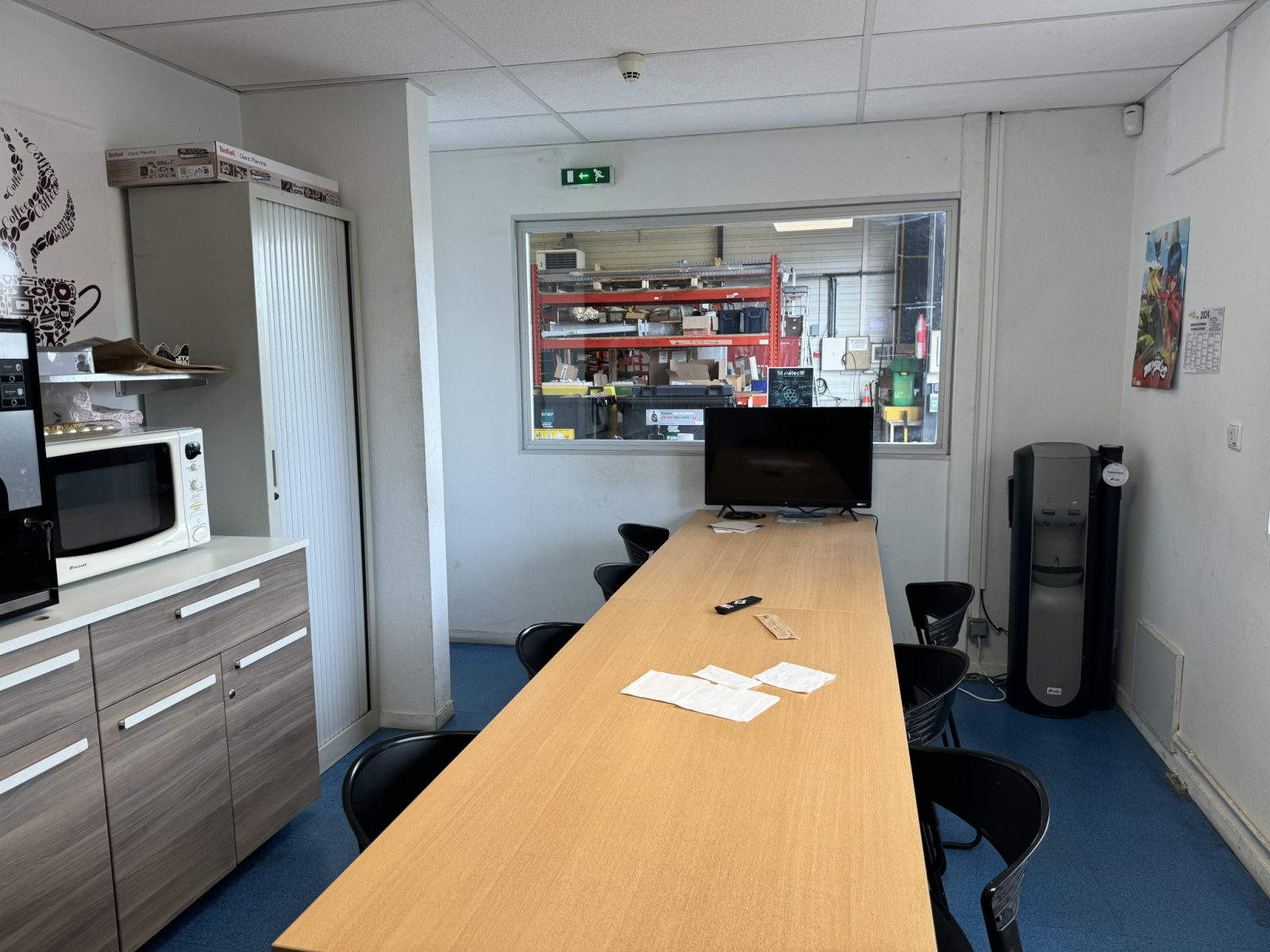 A louer sur Cournon d'auvergne, au coeur de la zone d'activité un local d'entrepôt et de bureau sur une surface totale de 768m2, comprenant un vaste entrepôt (654m2) desservi par deux portes sectionnelles de grande dimensions (largeur 4mX hauteur 4,5m), des bureaux climatisés sur deux niveaux comprenant salle de réunion, 5 bureaux individuels, salle de repos avec cuisine, vestiaires H/F, blocs sanitaires H/F(114m2). Parking extérieur 5 places et accès PL et véhicules articulés. Ce local est parfaitememnt adapté à toute activité professionnelle avec stockage, bureaux et espace de livraisons et d'expéditions.