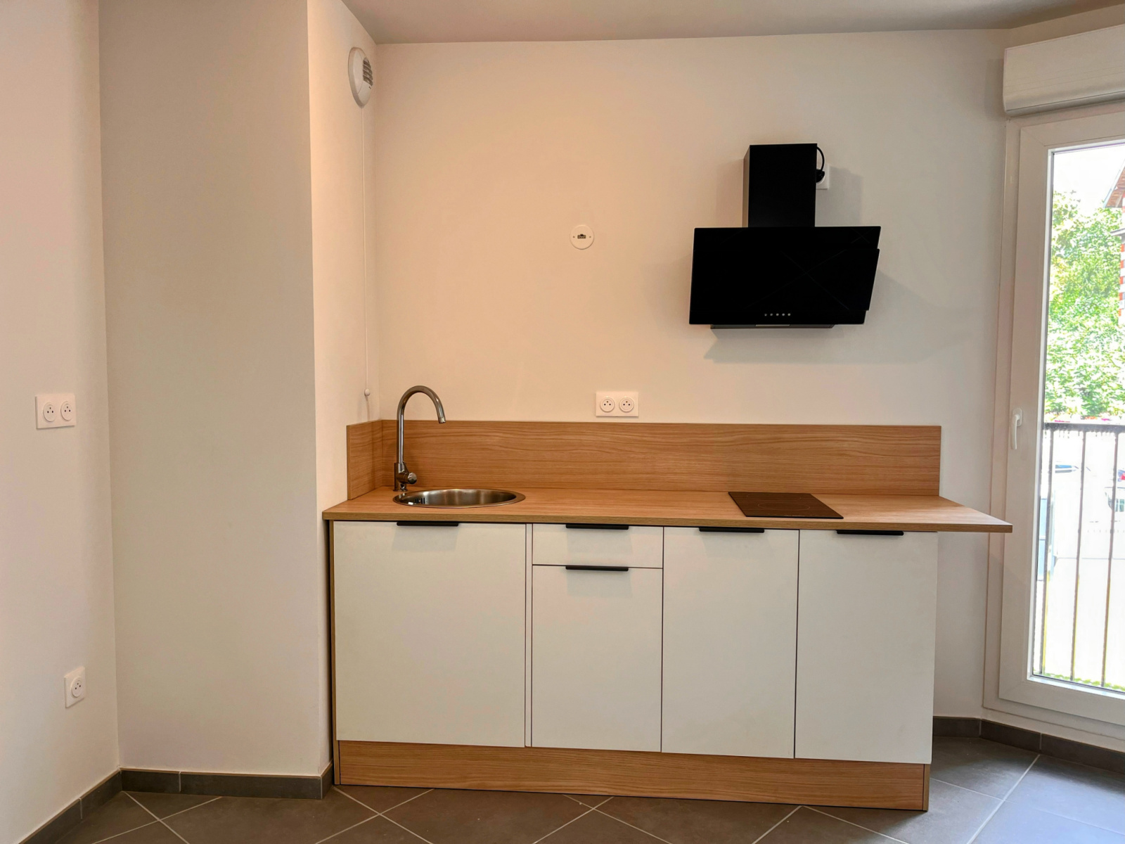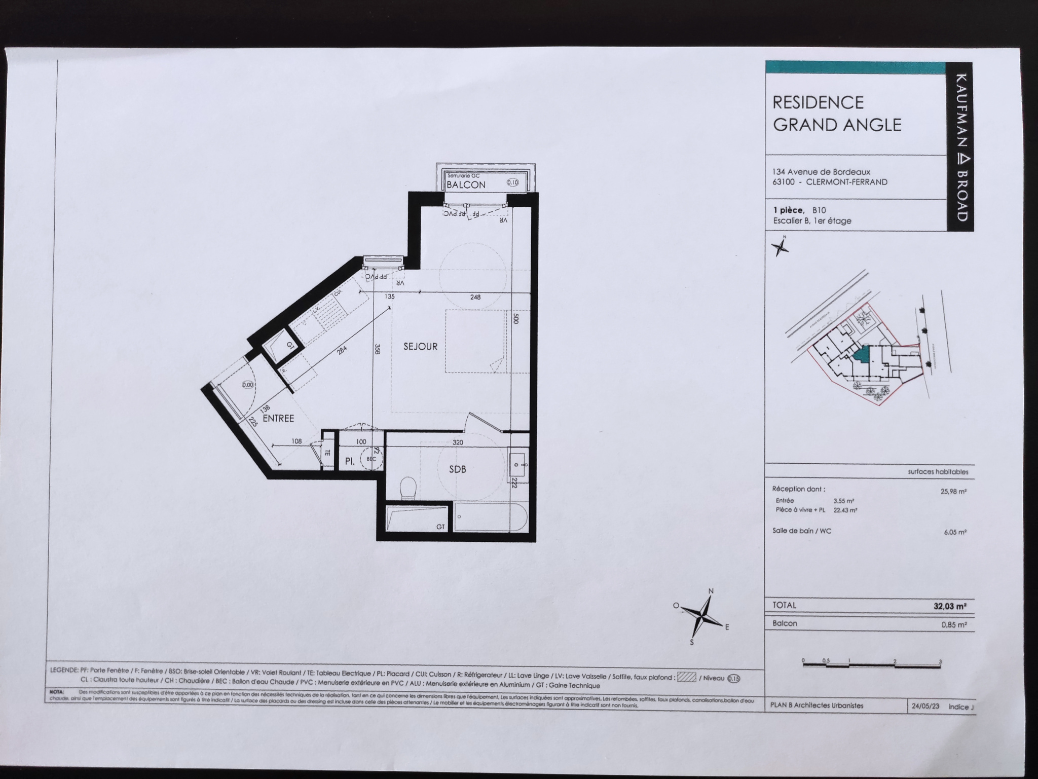 Studio 32 m² avec balcon – Résidence neuve 2025 – Secteur Les 4 Routes, Clermont-Ferrand. Nous proposons à la location un studio de 32 m², situé au sein d’une résidence neuve livrée en 2025, dans le secteur des 4 Routes à Clermont-Ferrand, Résidence Grand Angle. Ce logement se compose d’une entrée donnant sur une pièce de vie lumineuse avec cuisine aménagée, un coin séjour-nuit, d’une grande salle de bains ainsi que d’un balcon offrant un espace extérieur appréciable. La résidence bénéficie par ailleurs d’un ascenseur.