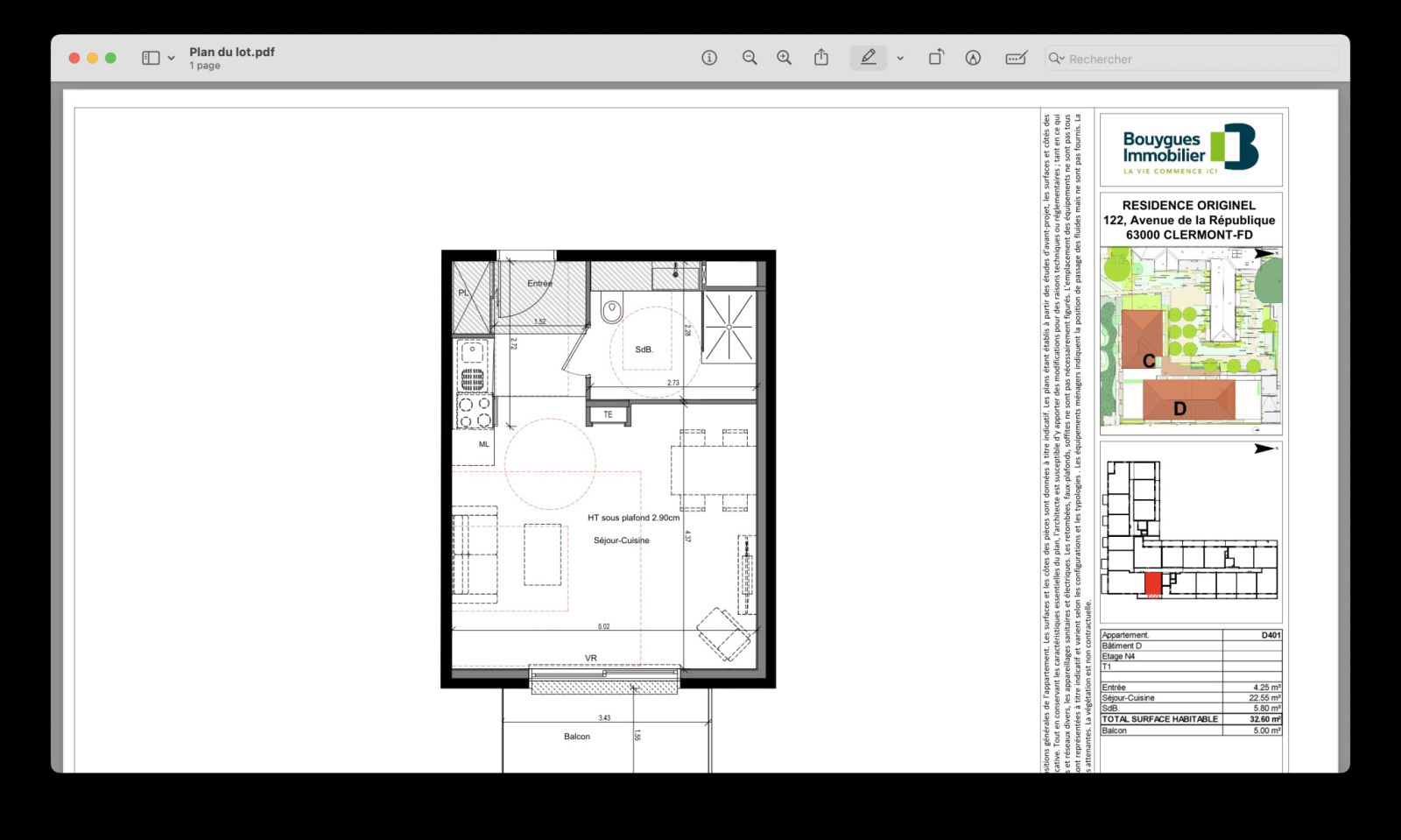 Studio de 32,6 m² avec balcon – Clermont-Ferrand (63000)