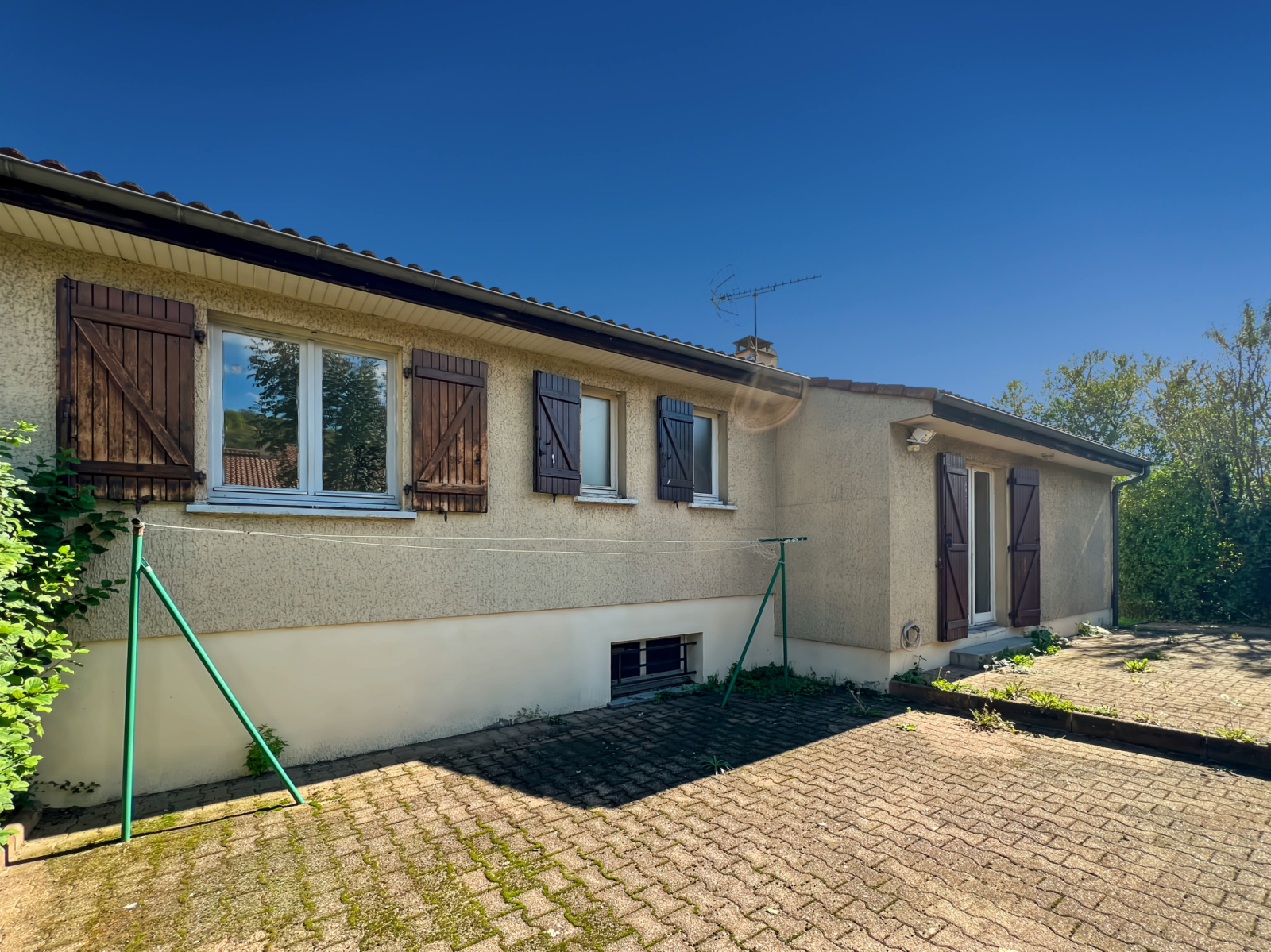 118 m² habitables – 573 m² de terrain clos et arboré – 4 chambres – Sous-sol – 2 terrasses