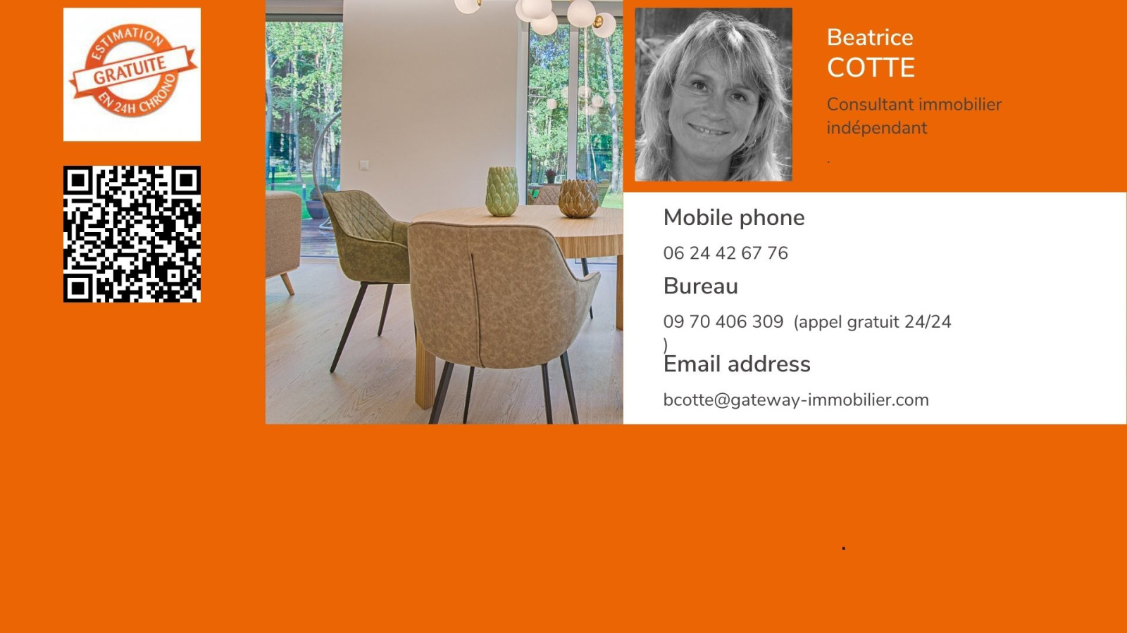 La présente annonce a été rédigée sous la responsabilité éditoriale de Béatrice COTTE consultante immobilier indépendante (EI) inscrit au registre spécial des agent commerciaux indépendant sous le n° RSAC 824 707 103 de Clermont Ferrand, titulaire de la carte de collaborateur n° ADC 6302 2024 000 000 061 pour le compte de la SAS GATEWAY immobilier siret 537 849 093 CPI n° 6302 2018 000 024 143. Béatrice COTTE Consultant immobilier indépendant Port zéro six 24 42 67 76.