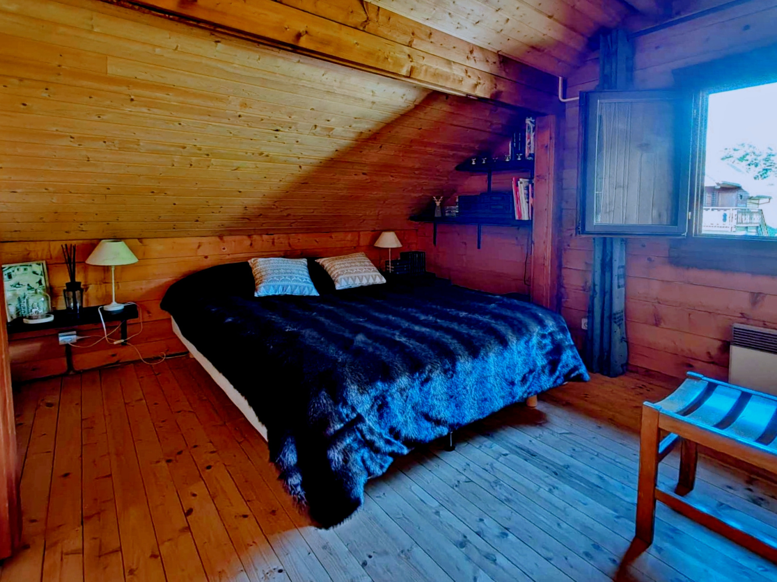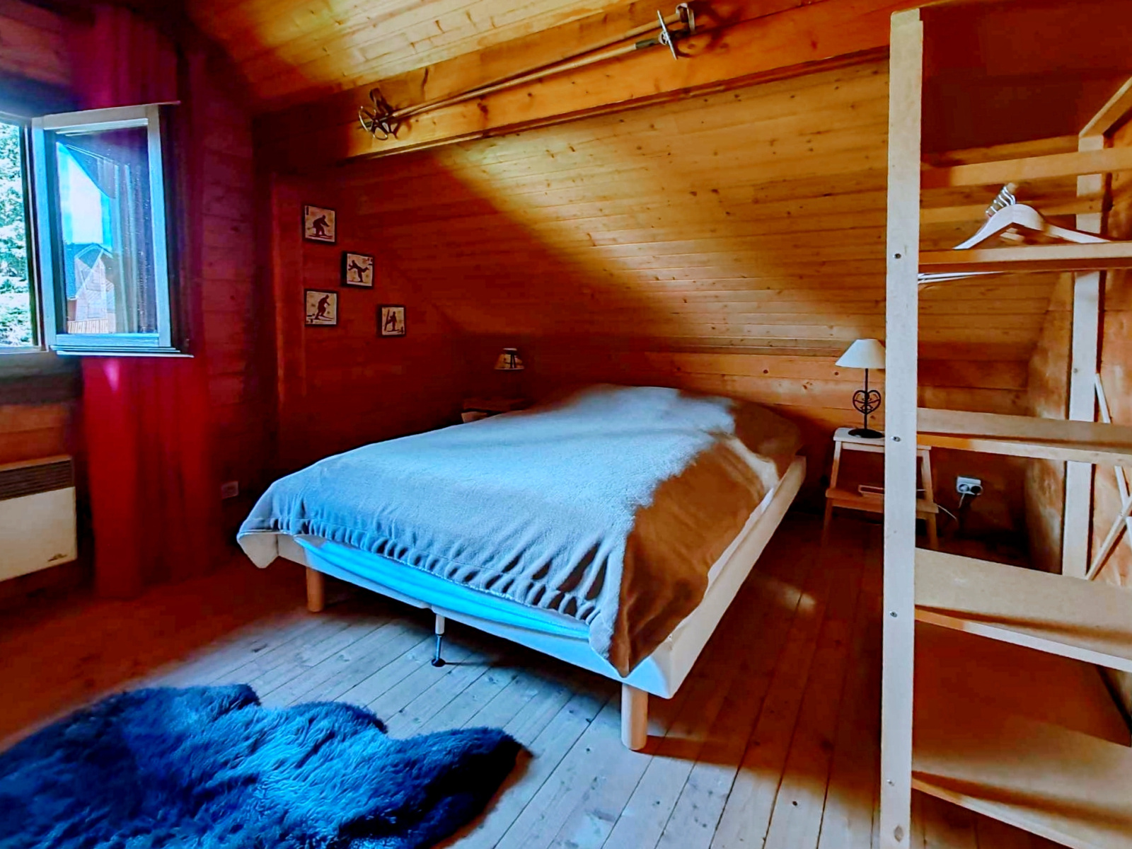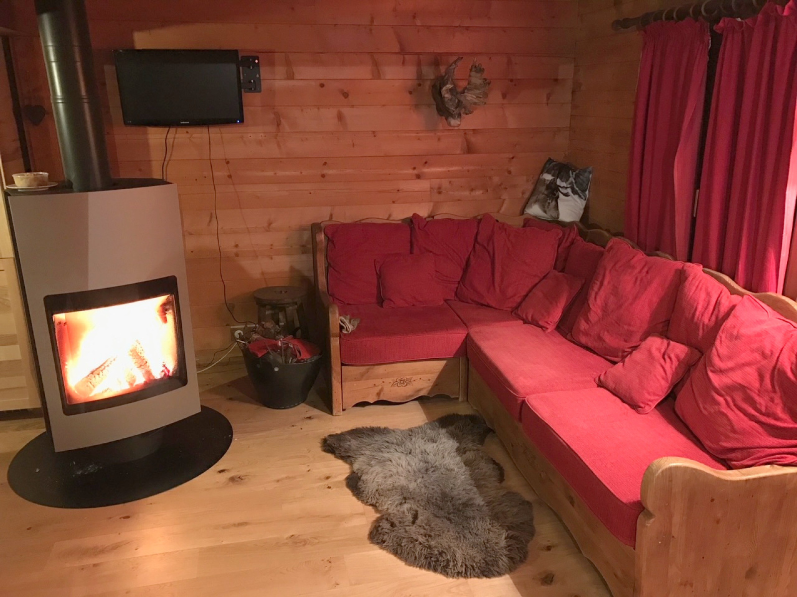 Un poêle à bois de qualité permet de chauffer tout le chalet et d’animer les soirées d’hiver au coin du feu. On trouve également une salle d’eau et un wc ainsi qu’une chambre de 9 m2