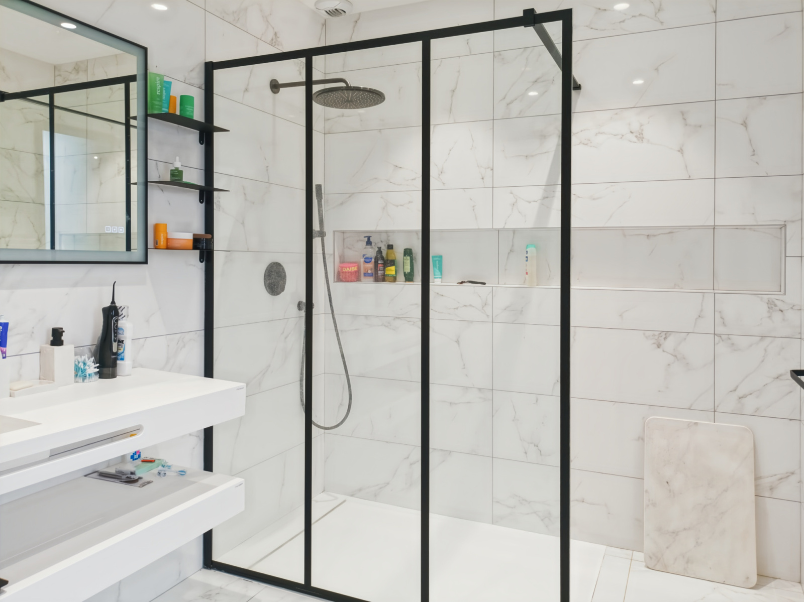 Trois chambres généreuses, salle de bains avec baignoire et douche à l’italienne, WC indépendant.